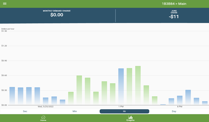 The usage visual tool available with the Emporia app provides another view on an hour-by-hour basis that helps to both understand and confirm usage patterns.