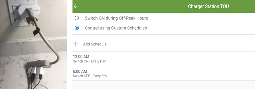 I use this setup to charge some of our electronic devices (cell phones, watches, etc.) during the night, based on the available super off-peak TOU schedule. For other electronics I adopt a similar approach but broaden it to times the device won’t be used. For example, my office printer is turned off from 9:00 p.m. to 8:00 a.m. to reduce the electrical consumption.